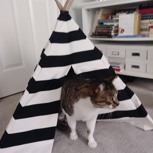 Dear Nanny Becky ~ Thank you so much for my beautiful and so pretty Tee Pee! I love the colors and I really love the snuggly pillow that I sit or lay down on or take serious naps on! I love being able to hide in there and peak out or play inside of it with mommy or daddy. You are the best nanny ever and I love you so much. Princess Ashes